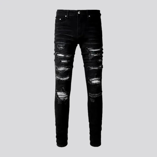 Black skinny distressed men's jeans