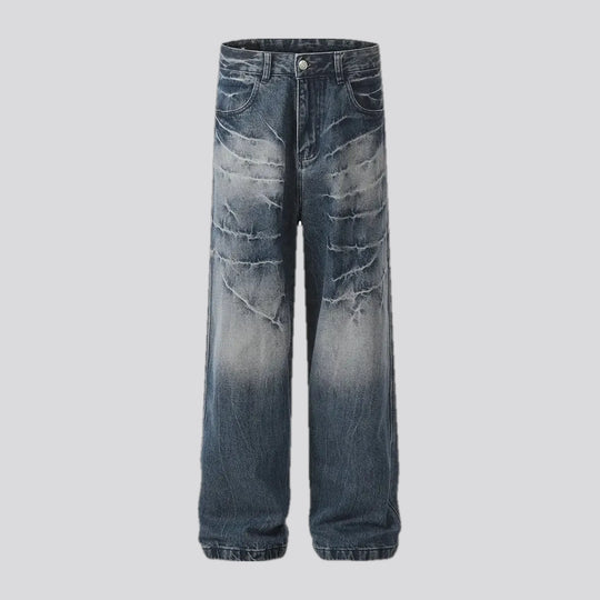Distressed color baggy men's jeans